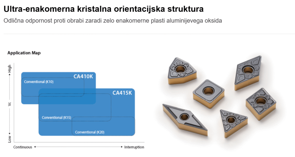 - CA415K : Vrsta za prekinjeno/močno prekinjeno obdelavo za vrhunsko stabilnost