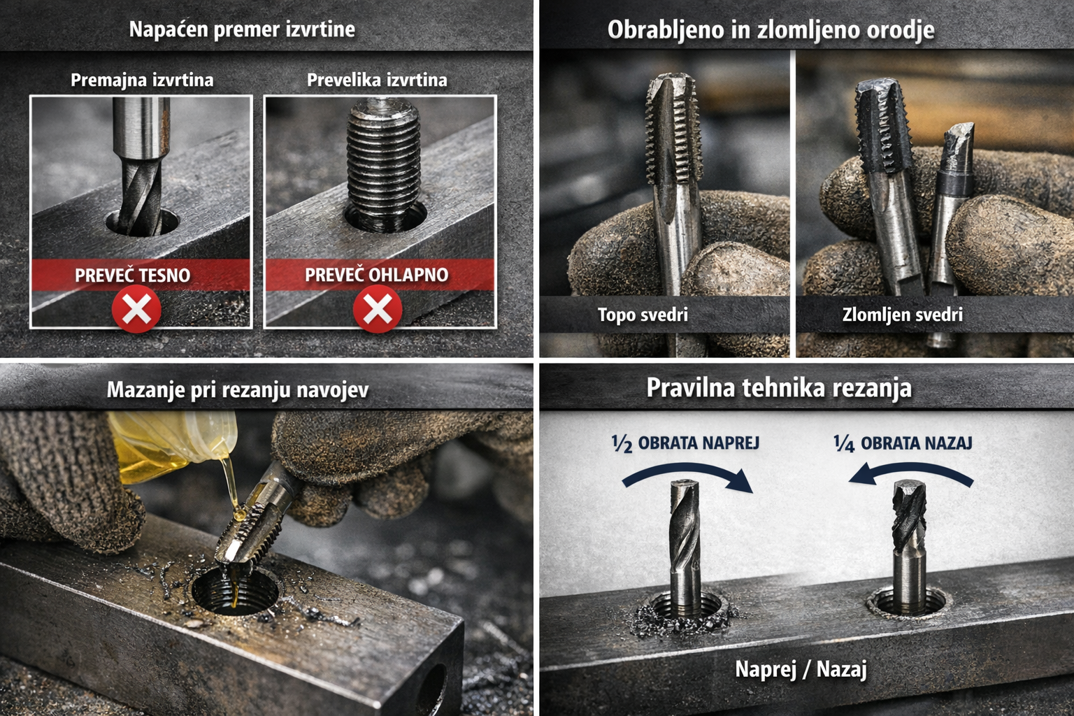 Rezultat napačne izbire je lahko trganje navoja ali hitra obraba orodja.